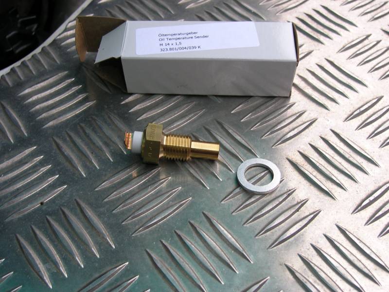 And fitted an oil temperature sender unit to the sump. It's by VDO and the number for my engine sump is: 323.801/004/039 K, being M14x1.5. You need to check against your engine number! |