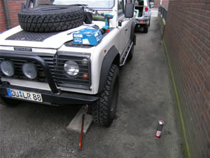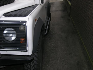 After having fitted rocksliders the stance of the Landy didn't look just right. I decided it had to be raised a little and that I needed wheel spacers. The spacers came first ...