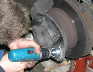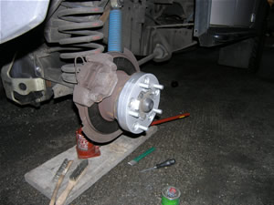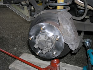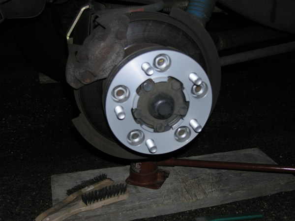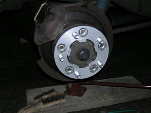 Fitting wheel spacers (click on pictures to enlarge). I opted for H&R 66mm wheel spacers simply fot the reasons that they are TUV approved, which is a must in Germany. They come in pairs, so you need to order a set of two pairs. They are straight forward to fit and it should take no more than half an hour if not for the preparation of the wheel hub assembly. There's a lot of rust and grime between the wheel and the hub and if you don't remove this carefully you will get problems later on when driving (wheel whobble, the spacers might even work loose).